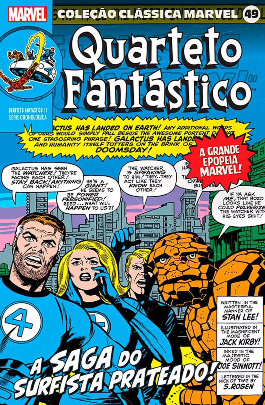 Neste décimo primeiro volume da COLEÇÃO CLÁSSICA MARVEL dedicado ao Quarteto Fantástico teremos a conclusão da saga que mostra a entrada dos Inumanos no panteão da Casa das Ideias e a chegada de Galactus, que decreta a extinção da raça humana ao escolher o planeta Terra como sua próxima refeição... Juntamente com o Devorador de Mundos, outro personagem que faz sua estreia é o Surfista Prateado, que desempenhará um papel importantíssimo na luta desesperada do Quarteto para salvar o mundo! Uma das histórias mais adoradas pelos fãs do Senhor Fantástico, da Garota Invisível, do Tocha Humana e do Coisa!