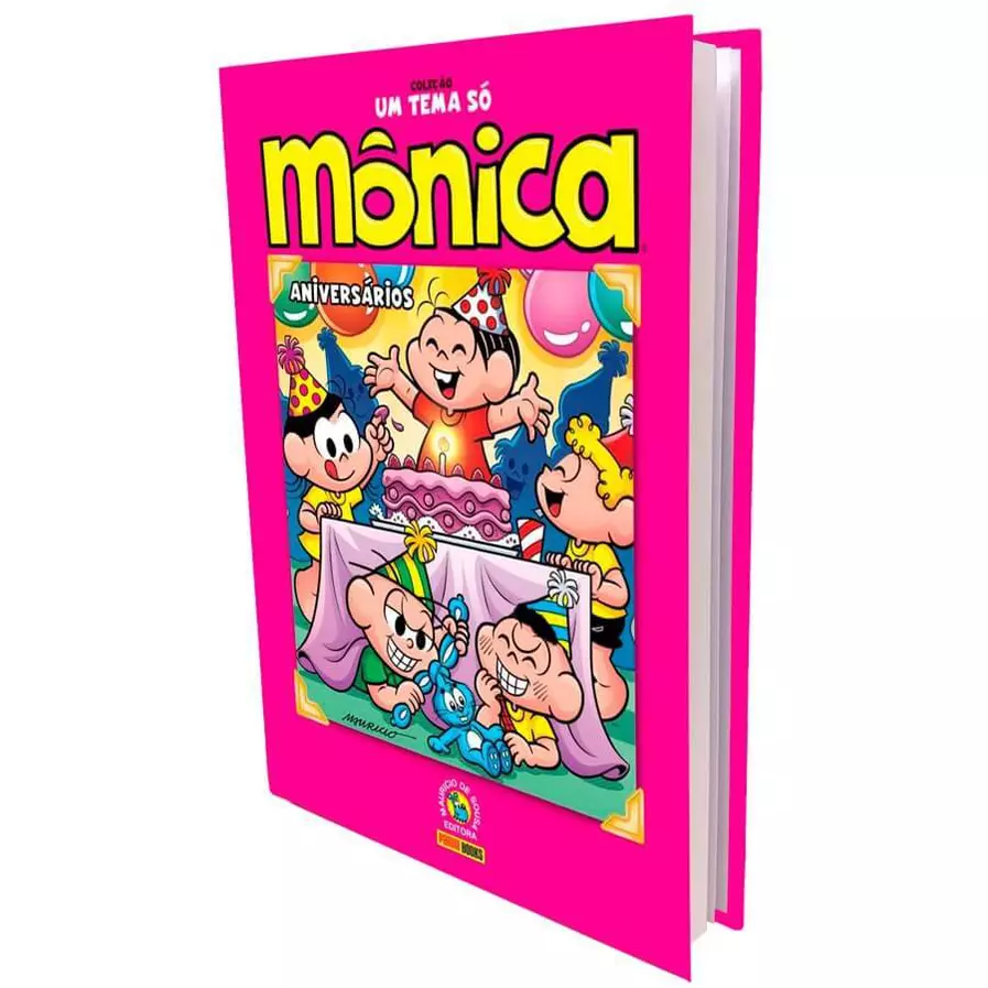 A Coleção um tema só reúne a cada volume mais de 300 páginas com histórias da Turminha sobre o mesmo assunto! Comemorar mais um ano de vida pode ser uma experiência incrível! Divertir-se ao lado de seus amigos, comer muitas guloseimas e aprontar de montão! Aqui a Mônica te convida para uma porção de celebrações, que contam com atrações peculiares: palhaços sem graça, mágicos muito loucos, uma boneca que ganha vida, o Monicão descontrolado e, até mesmo, um ladrão de velas! Não podemos nos esquecer das lembranças! Normalmente, são surpresas maravilhosas, que demonstram o quanto a pessoa é querida. Já, outras vezes, podem causar a maior confusão, como um coelho gigante que perde a cabeça ou um monstro à solta na cidade!