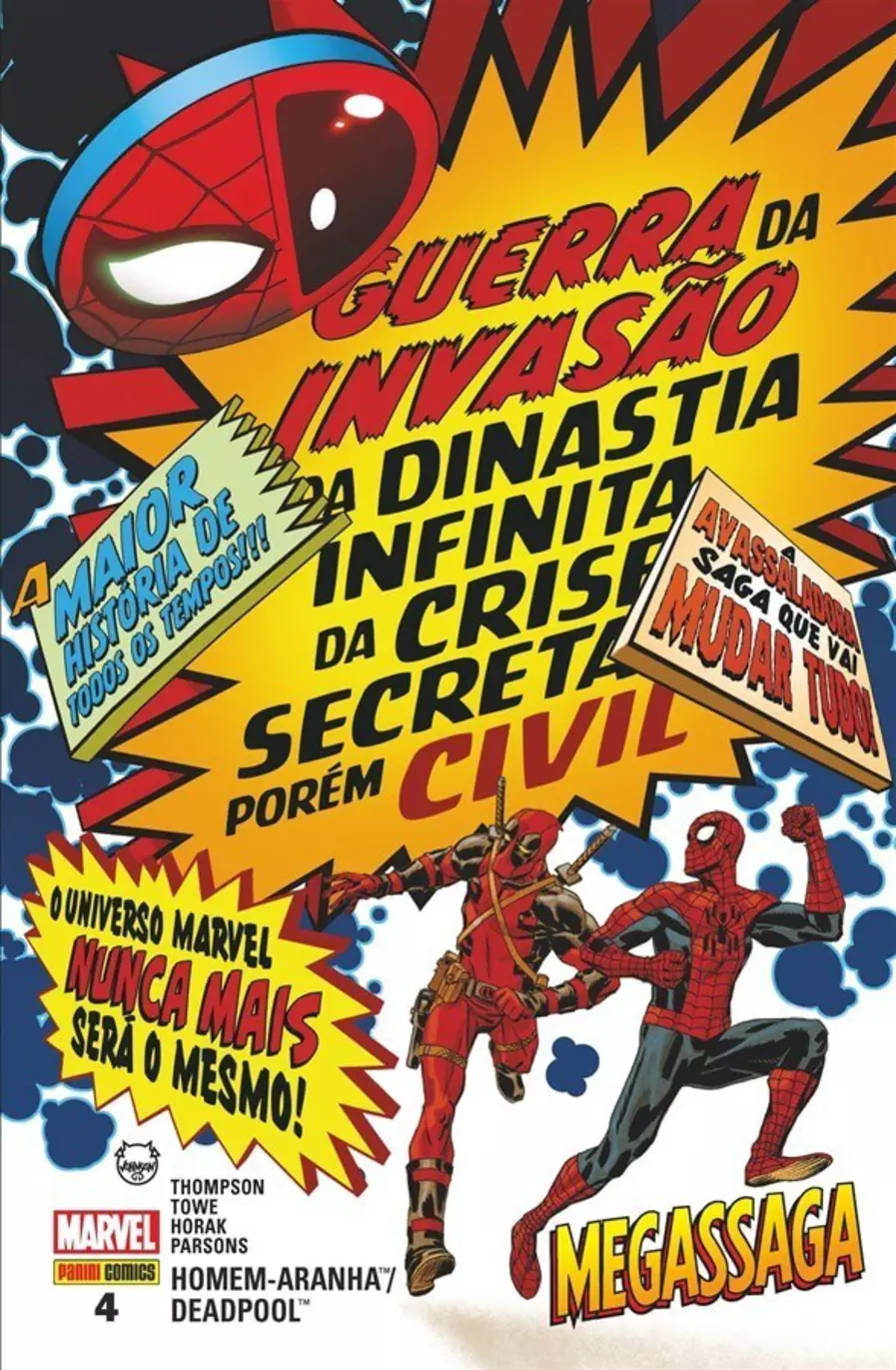 A ameaça da Zona Negativa conhecida como Blastaar, a Bomba Viva, surge para enfrentar Homem-Aranha e Deadpool e estragar seu plano de voltar para casa. E, como se isso já não fosse o bastante para os nossos heróis que vestem vermelho, é dado início ao maior evento da história da Marvel Comics. É sério! A Guerra da Invasão da Dinastia Infinita da Crise Secreta Porém Civil abalará as estruturas do Universo Marvel!