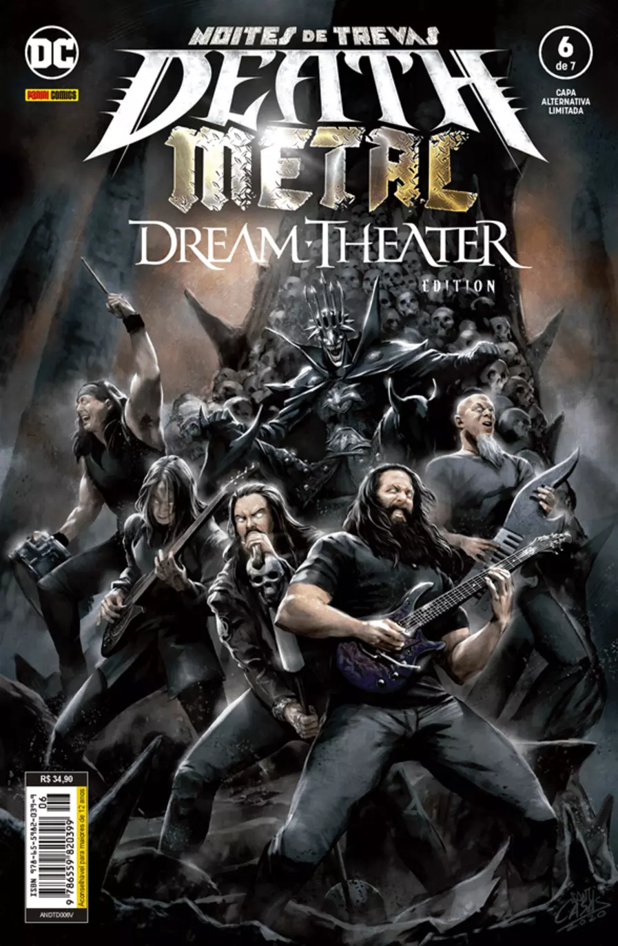 O Universo DC enfrenta a ascensão do Cavaleiro Mais Denso! Os heróis e vilões unem-se para combater e banir o ser das profundezas do Multiverso das Trevas. Ao mesmo tempo, o Rei Robin e seu exército de Groblins está à espreita. E os segredos mais sombrios do Multiverso são expostos quando dois verdadeiros titãs se encaram. Testemunhe o retorno do Superboy Primordial! Esta edição limitada tem capa especial estrelada pela banda Dream Theater e material extra!
