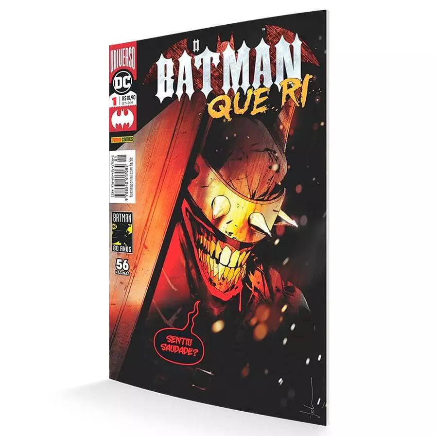 Em uma deturpada realidade do Multiverso das Trevas, Bruce Wayne finalmente atinge o limite da sua resistência e mata o Coringa. Porém, uma toxina presente no coração do vilão infecta o Cavaleiro das Trevas, mutando para sempre o seu ser e dando origem à macabra criatura conhecida como o Batman Que Ri. Agora, esse ser das trevas singra o multiverso, levando dor, morte e destruição para todos os que carregam o símbolo do Morcego.