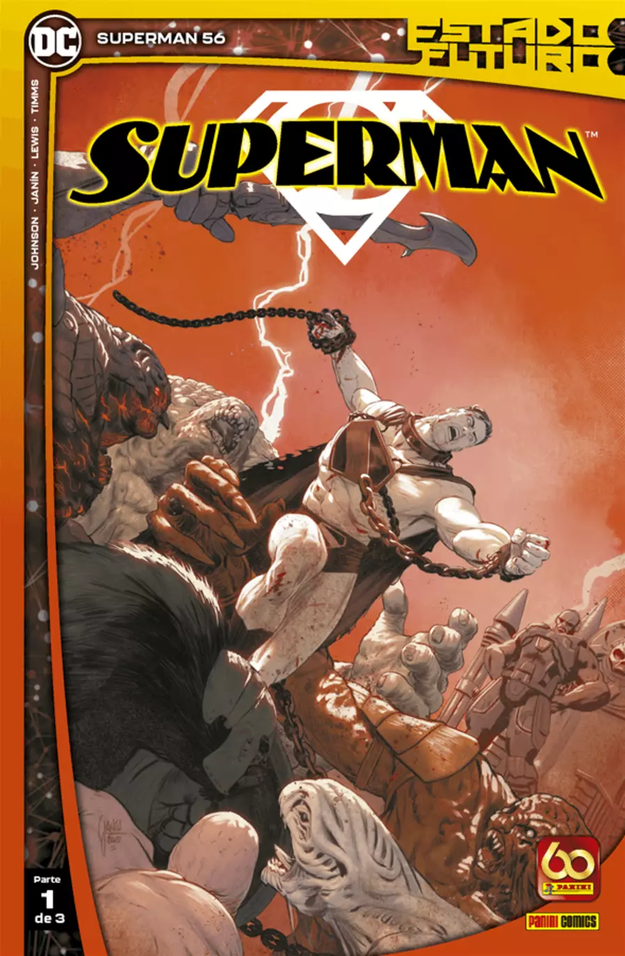 ESTADO FUTURO: Clark Kent se foi, deixando um buraco em forma de Superman para trás. Superman foi para o Mundo Bélico, onde luta como gladiador nas covas mortais de Mongul. Mas sua ideia de vitória não se alinha com as expectativas das hordas de Mongul! E mais: antes de partir para lugares desconhecidos, Clark Kent confiou a segurança da Terra a seu filho. Agora, Jonathan Kent é o Superman! Quando uma nova versão de Brainiac ataca, Jon toma medidas drásticas, que resultam na Cidade Engarrafada de Metrópolis! Mas cuidado, Jon, porque a Supergirl está a caminho e não parece muito feliz com sua decisão.