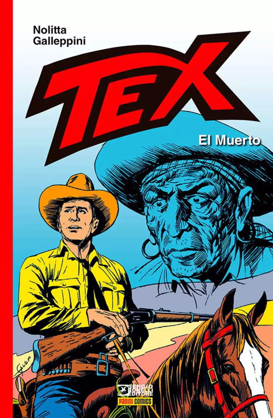 El Muerto, misterioso e sanguinário criminoso, com um nome inquietante e um rosto marcado por queimaduras arrepiantes, lança a Tex um desafio terrível. Jack Tigre é violentamente espancado, um jovem navajo é morto a facadas, Kit Willer é ferido no ombro, um xerife amigo do Ranger é assassinado. Um plano de vingança maligno que o levará por uma trilha sangrenta até o cemitério de Pueblo Feliz, cenário de um memorável duelo final. Guido Nolitta, aliás, Sergio Bonelli, e Aurelio Galleppini, nome artístico Galep, montam uma primorosa trama de faroeste perfeitamente engrenada, que mantém o leitor preso à história até a última página.