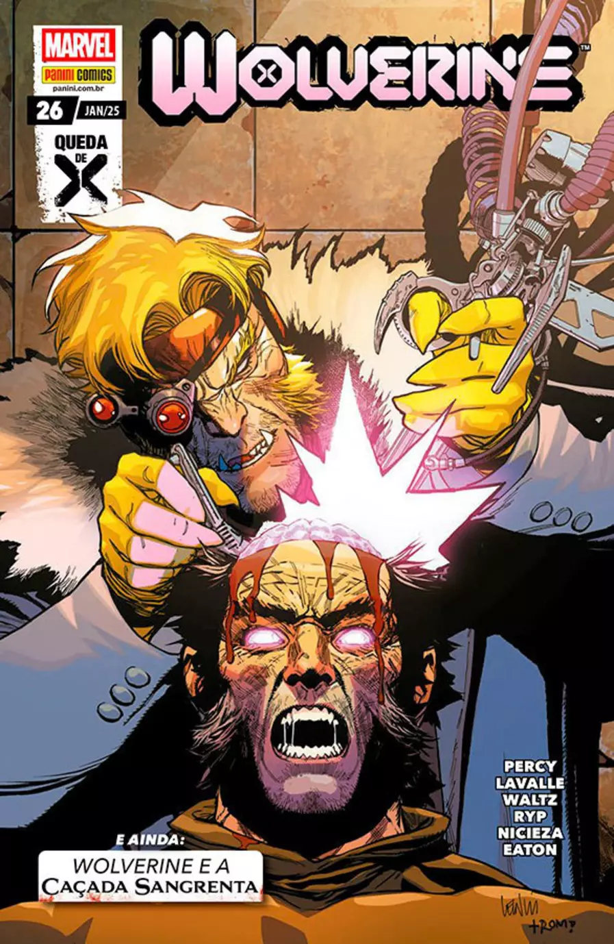 Ainda nesta edição, Wolverine prova que é o melhor no que faz, e isso inclui lutar contra vampiros! Esteja aqui enquanto a trama (e o sangue!) engrossam, e uma seita secreta de vampiros põe em prática uma estratégia surpreendente que levará Logan ao limite! A Caçada Sangrenta já começou! Enquanto isso, Cable e seu colega mais jovem, Nate, estão mais perto do que nunca de descobrir as origens da Neocracia e pôr fim a um futuro sangrento antes que possa se realizar - mas cada passo também os coloca mais na mira do misterioso Parvenu! Esta edição também conta com uma participação de Ororo, em Marvel Vozes!